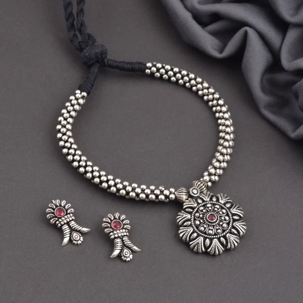 Embrace the timeless elegance of traditional Maharashtrian craftsmanship with the South India Oxidized Thushi Necklace. Known for its intricate design and cultural significance, this necklace beautifully showcases the heritage of South India. Made with high-quality Oxidized metal, it exudes a vintage charm that complements both contemporary and classic styles.