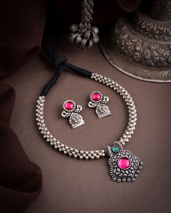 Be the first to review “K Oxidised Thushi Necklace”