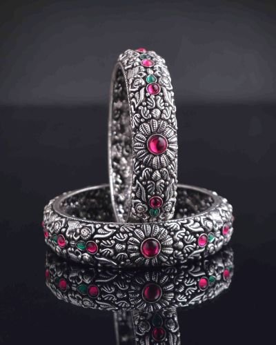 Our oxidised bangles are designed to bring out your unique style, featuring delicate patterns, filigree work, and intricate detailing.