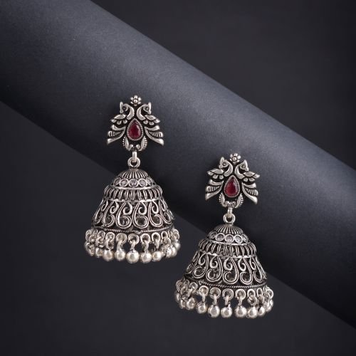 Oxidised Peacock Zumki EarringsĀ are crafted with anĀ antique silver or oxidised metal finishĀ and featureĀ peacock motifsĀ ā a symbol of beauty and grace in Indian culture. Because of the oxidised look, the detailed peacock design stands out with aĀ vintage, handcrafted vibeĀ that pairs beautifully with traditional wear like sarees, lehengas, and ethnic fusion outfits
