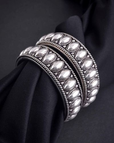 • Oxidised finish:Ā A darkened silver or metal alloy look, giving the bangles a vintage, tribal charm.