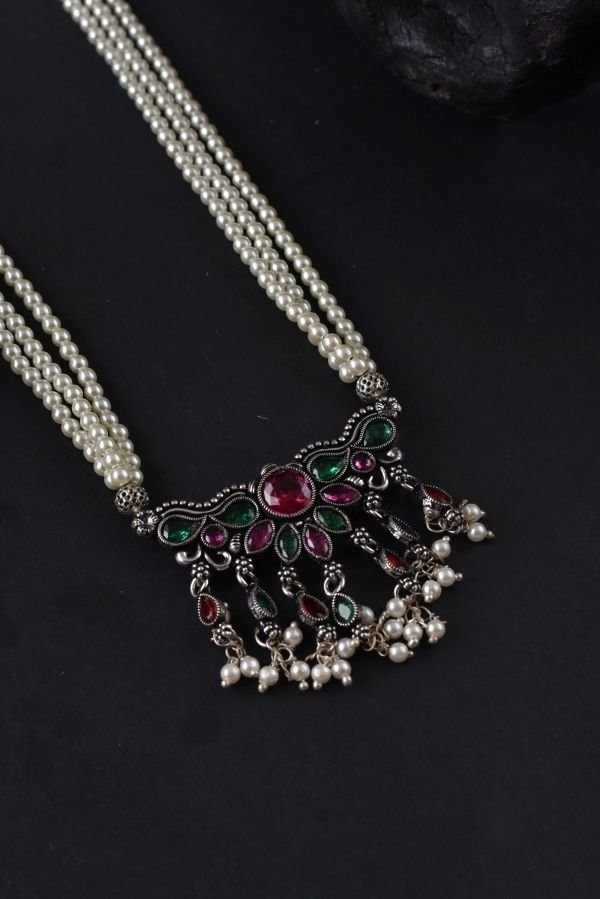 Add timeless elegance to your ethnic jewellery collection with this beautifully craftedĀ Oxidised Tanmani Necklace. Designed in a traditional Maharashtrian style, this tanmani features finely detailed motifs with an antique oxidised finish that enhances its vintage charm. The intricate craftsmanship and classic design make it a perfect choice for festive occasions, weddings, and cultural celebrations. Pair it effortlessly with sarees, nauvari, or traditional attire to complete a graceful ethnic look.