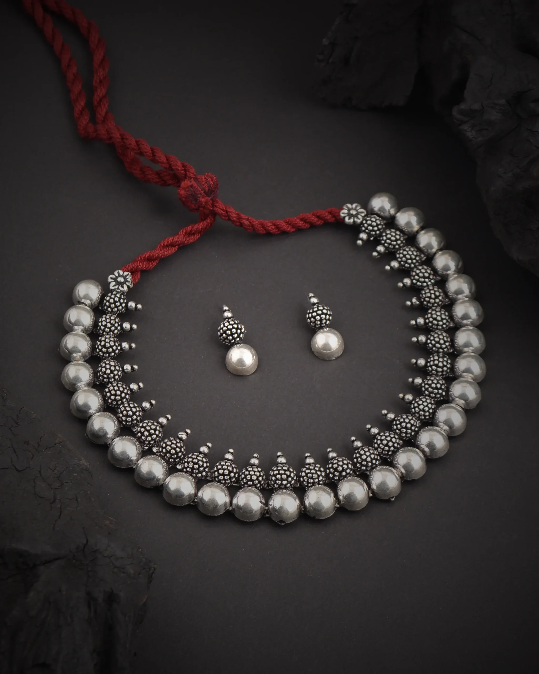 Oxidised Handcrafted Ethnic Boll Stone Necklace