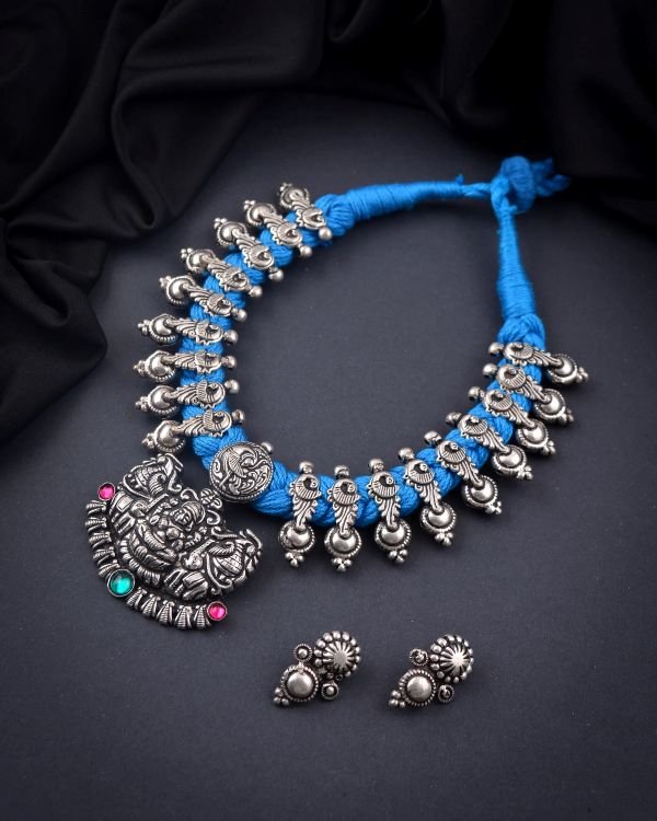 Be the first to review “Oxidised Laxmi Blue thread Thread Necklace”