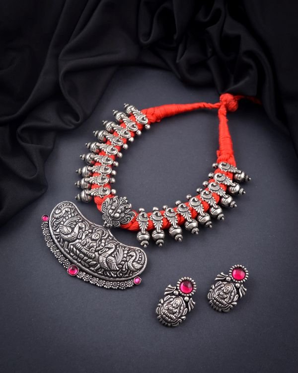 Be the first to review “Oxidised Laxmi Red thread Thread Necklace”