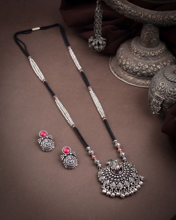 Be the first to review “Oxidised Laxmi Stone Pendant Long Mangalsutra”