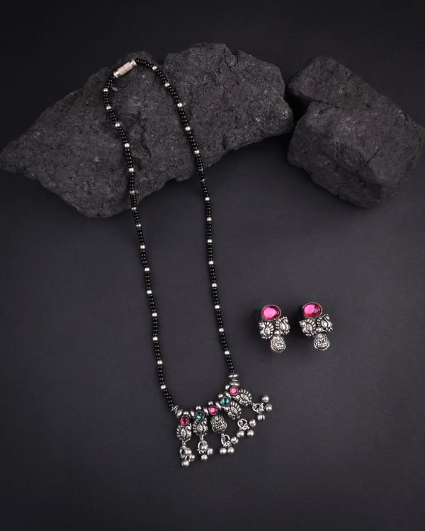 Oxidised Laxmi Stone Pendant Long Mangalsutra
