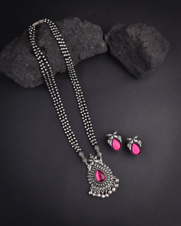 Oxidised Peacock Pink Stone Mangalsutra