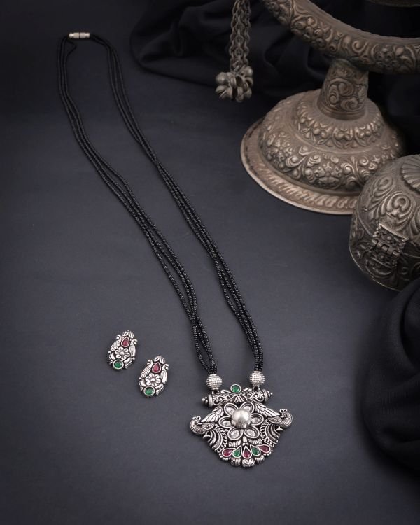 Ideal for daily wear or special occasions, this mangalsutra features intricate detailing, making it a statement of love, commitment, and grace. Whether you’re looking to celebrate your wedding vows or add a sophisticated touch to your jewellery collection, this oxidised mangalsutra is sure to become a cherished piece.