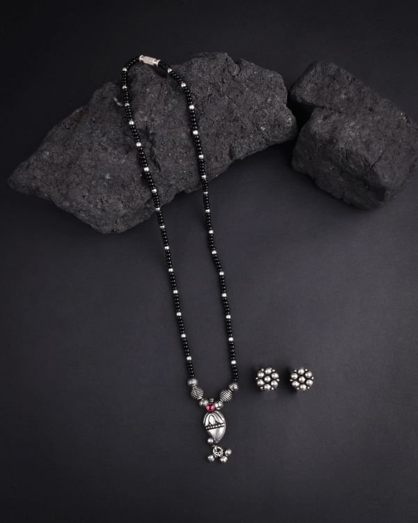 Ideal for daily wear or special occasions, this mangalsutra features intricate detailing, making it a statement of love, commitment, and grace. Whether you’re looking to celebrate your wedding vows or add a sophisticated touch to your jewellery collection, this oxidised mangalsutra is sure to become a cherished piece.