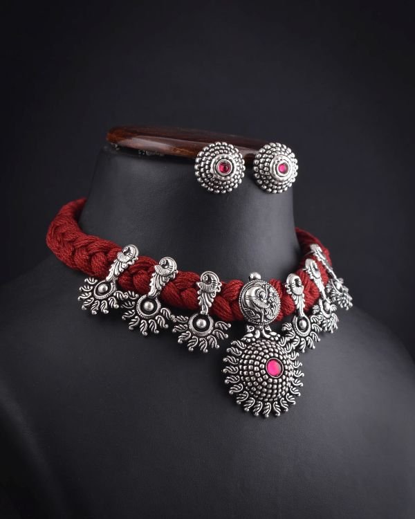 Discover the perfect fusion of traditional craftsmanship and contemporary style with our Oxidised Thread Jewellery collection. Each piece is meticulously designed to offer a stunning blend of rich, antique oxidised metal and vibrant thread work, creating an eye-catching contrast.