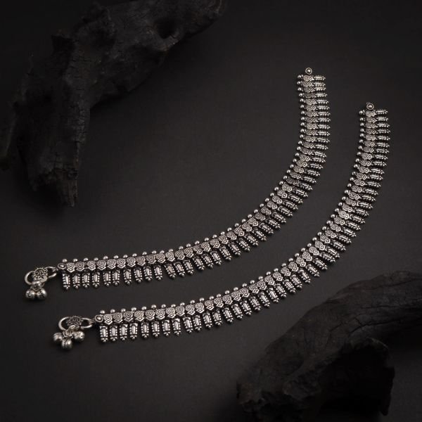 Embrace timeless beauty with our exquisite oxidised payals (anklets). Crafted with intricate detailing and designed to reflect the essence of heritage, these anklets bring a sophisticated, vintage charm to your style.