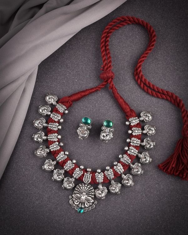 Be the first to review “Oxidised Peackock Thread Stone Necklace”