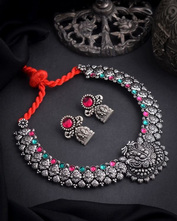 Elevate your ethnic collection with this stunning Oxidized Temple Necklace, a beautiful fusion of traditional artistry and modern elegance.
