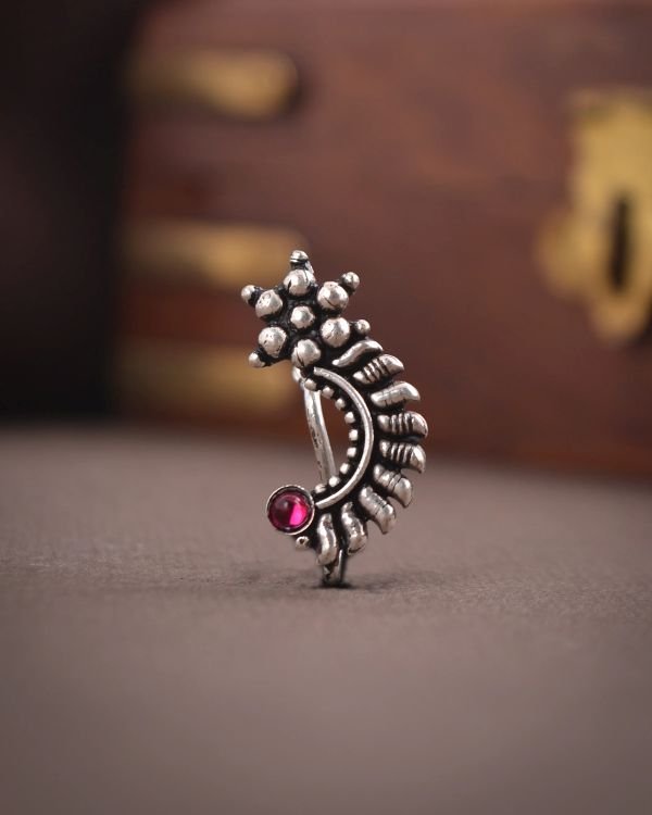 AnĀ Oxidized Kudi Stone NathĀ is aĀ traditional Indian nose ring (nath)Ā that combines the bold, roundedĀ kudi styleĀ with decorativeĀ stonesĀ and anĀ oxidized metal finish.