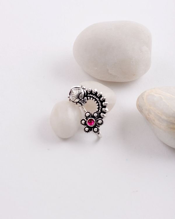 Our Oxidized Nath is a beautiful blend of timeless tradition and contemporary style. Crafted from high-quality metals like silver or brass, this nose ring features an exquisite darkened finish that enhances its antique allure. The oxidation process gives the nath a rich, rustic appeal, making it the perfect accessory for those seeking a unique, vintage-inspired look.